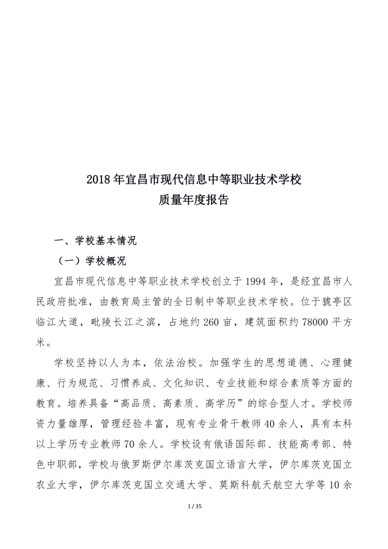 2018年宜昌市现代信息中等职业技术学校 质量年度报告
