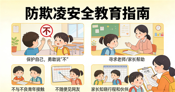 教育孩子要学会保护自己,学会敢于对侵害自己的行为说“不”,同时要寻求帮助。教育孩子不要与社会上不良青年接触、交往,更不能随便与网友见面。孩子假期外出,家长要知晓行程和伙伴。