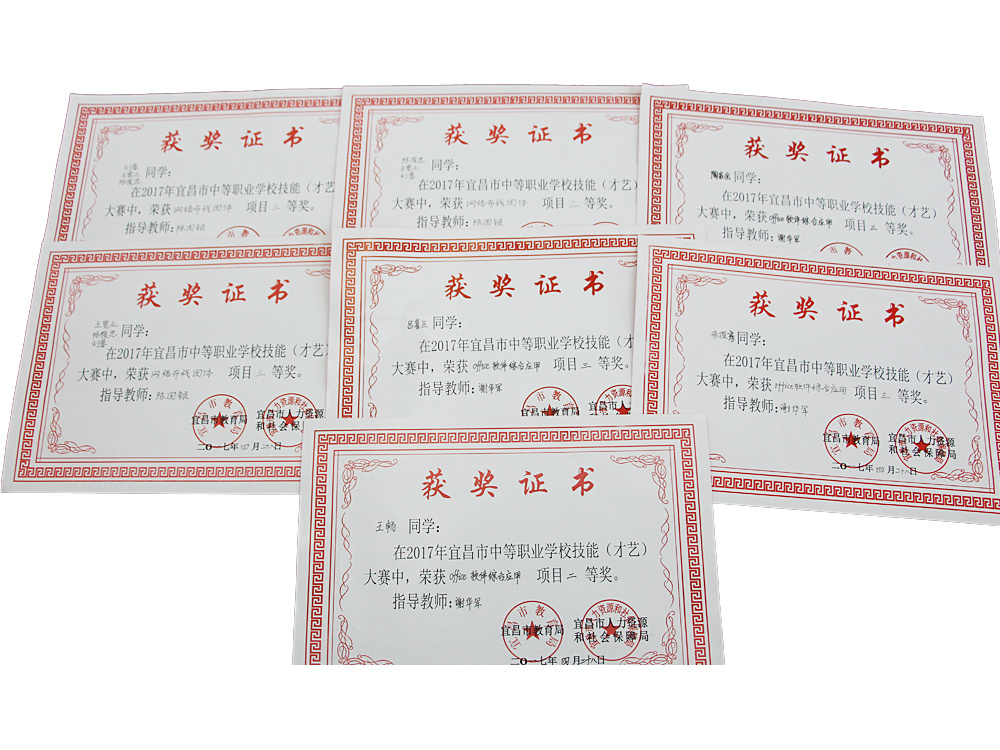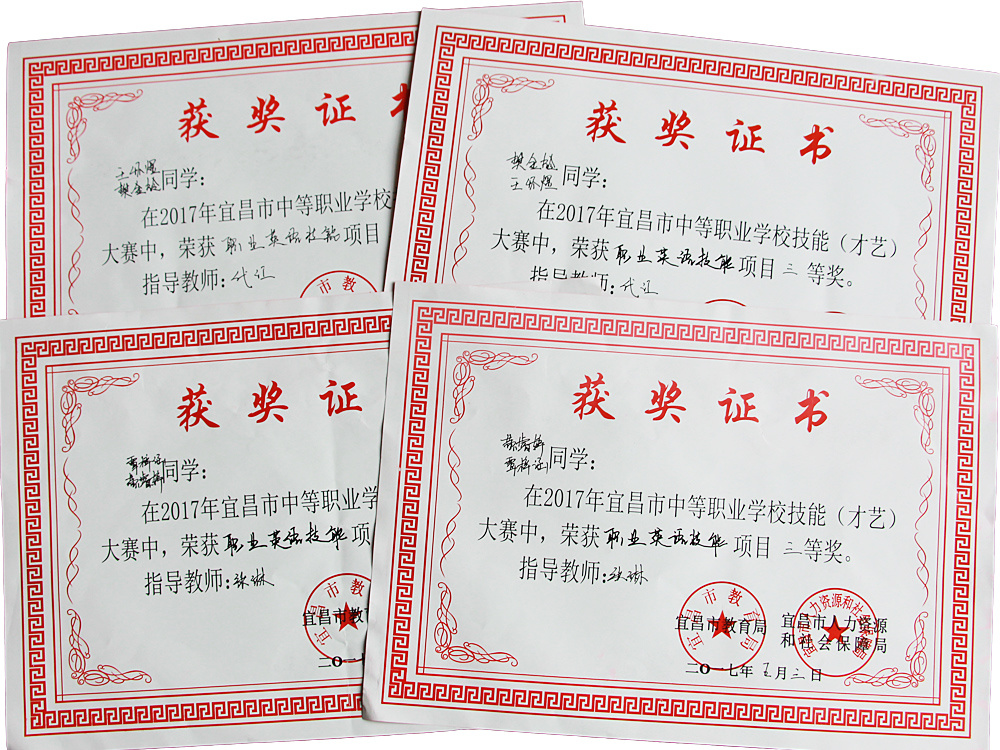 同学在2017年宜昌中职学校技能(才艺)大赛中荣获奖项