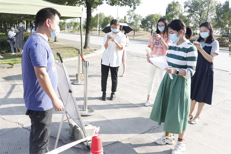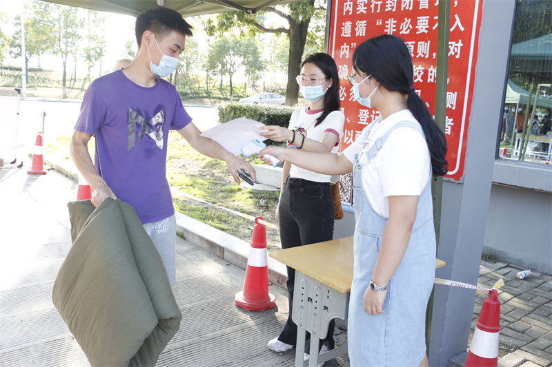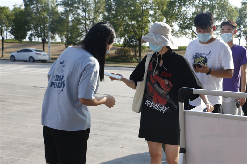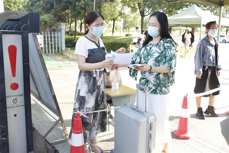 扫码测温——核查健康码、行程码与14日健康监测表后再带领新生进入学校