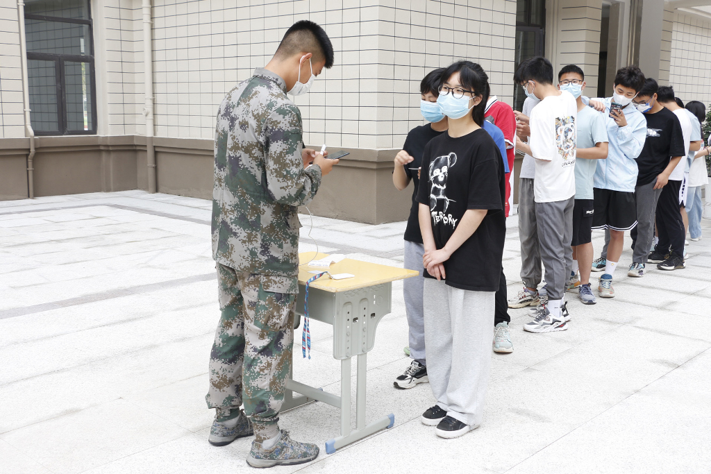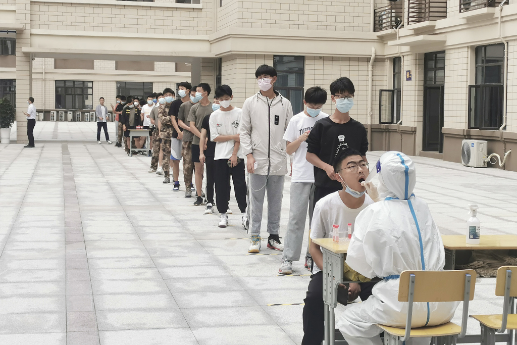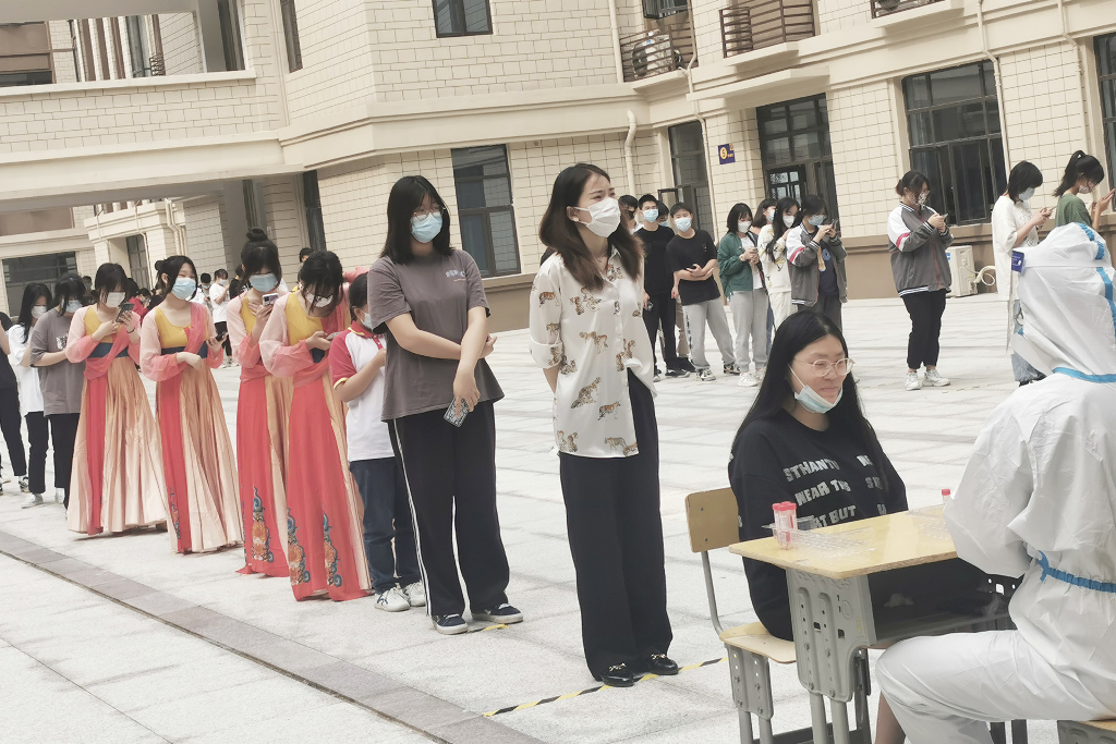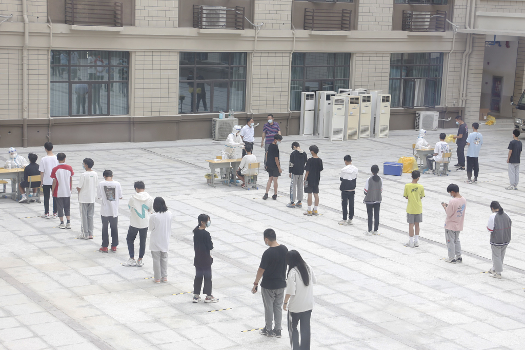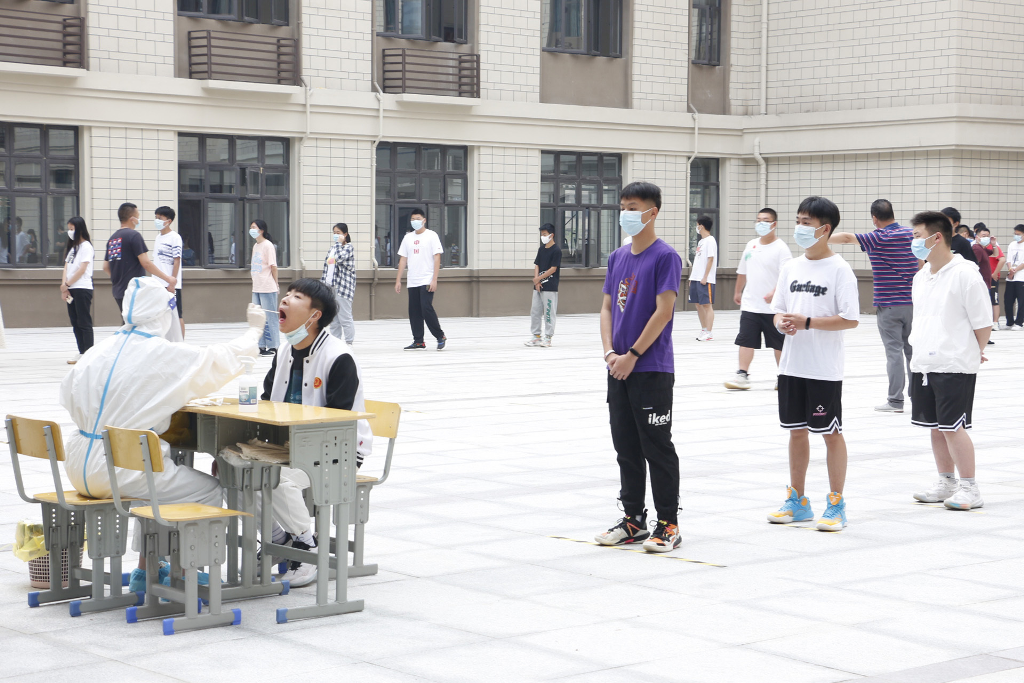 核酸检测过程中,执行校长李朝晖现场督导,全体师生严格遵守防疫要求,保持一米安全距离;全程佩戴口罩,不相互攀谈;分组排队,避免人员过度集中;检测后及时离开,不在检测现场逗留、聚集。按照目前“10混1”的普筛策略,以“早、快、全”的工作方式,做好全校核酸检测工作,做到应检必检、不落一人。