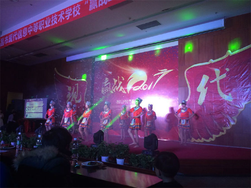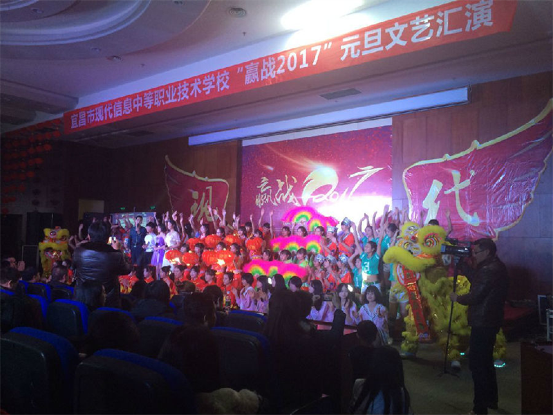 2016年12月29日晚,现代信息学校音乐厅内喜气洋洋、热闹非凡,由学工处、团委承办,校艺术团、校社团联合会协办的2017年“喜迎元旦,欢度新年赢战2017”元旦大型文艺晚会在这里隆重举行。校长朱宗长、校领导田水荣、胡一杰、邓峰,各处室负责人与学校1500多名师生现场观看晚会,在欢庆喜悦的氛围中迎接新年的到来。