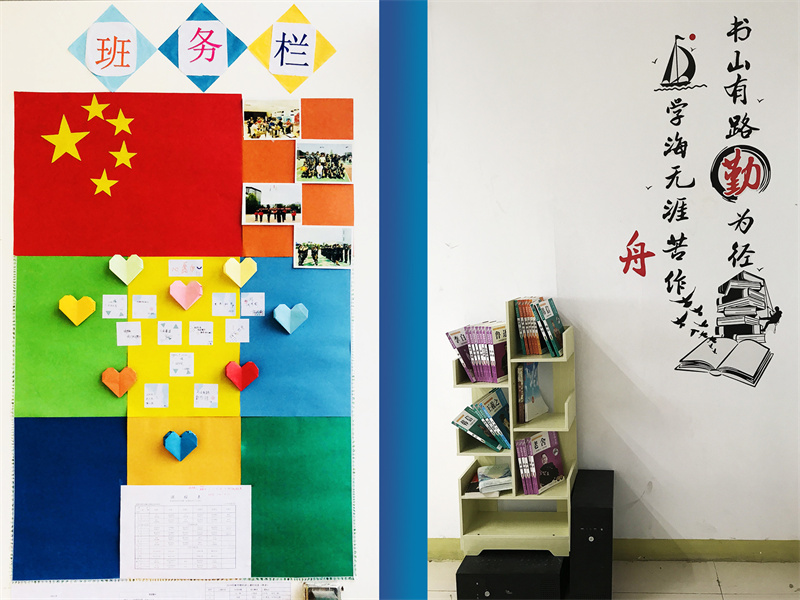 活动准备期间,各班积极行动、精心布置,力求凸显班级特色,让教室的每一面墙壁都会“说话”。班主任教师充分发挥学生特长,师生携手共建,多渠道查找资料,进行文化墙造型设计。各班文化墙内容丰富多彩:“班级建设栏”、“快乐读书角”、“个性照片墙”、“创意墙绘”等栏目,和谐统一中又各有亮点,融趣味性及教育性为一体,既体现了班级特色,又给学生提供了自我展示的平台。
