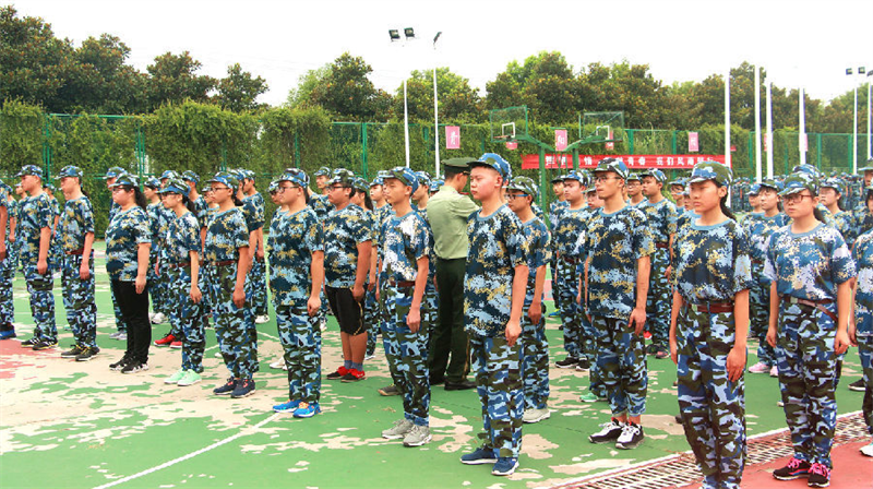 8月20日上午,我校2017年新生国防教育训练正式拉开序幕,学校领导、全体教官、全体参训同学等参加开幕式,学校学工处主任黄振新主持开幕式。