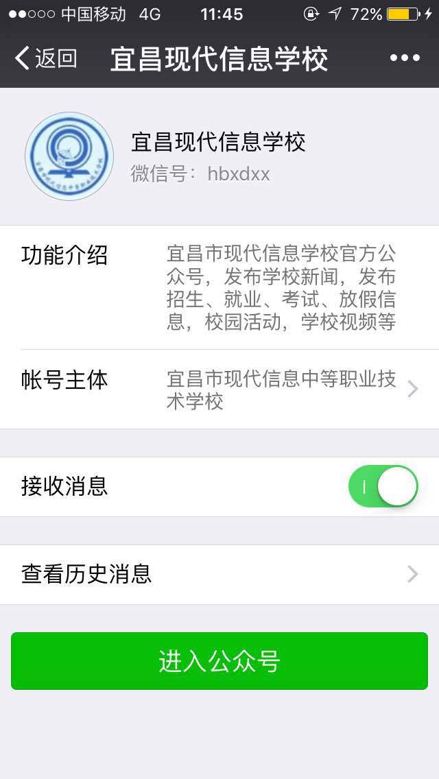 宜昌现代信息学校官方微信平台关注方式: