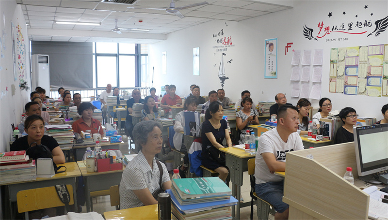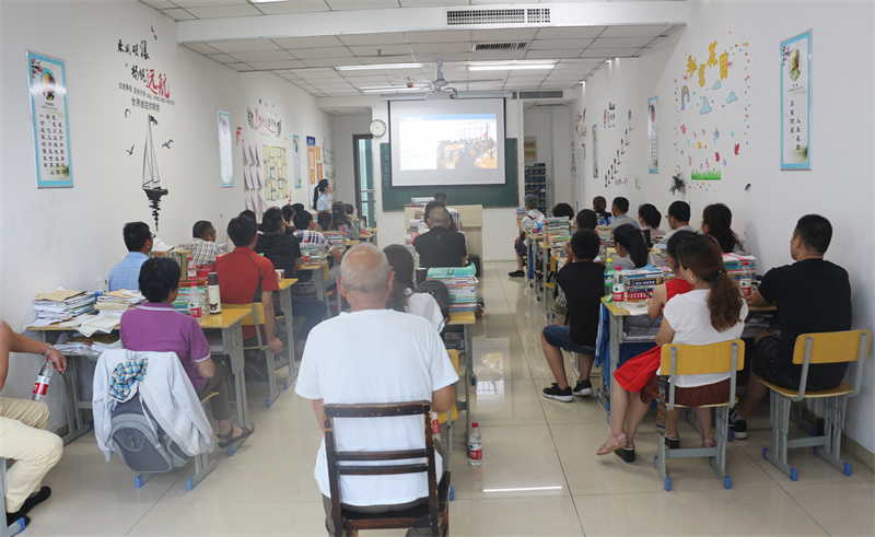 教学副校长肖飞借助2017年技能高考招录信息及2018年技能高考的报名信息等资料向家长详细解读了湖北省技能高考及单独招生的相关政策,帮助家长及学生树立正确的升学观和成材观,通报了18年春季学期期中考试成绩分析,并对后期全校教育教学工作思路和备考工作策略做了汇报,嘱托广大学生既要怀揣梦想仰望星空,更要扎实巧干脚踏实地。