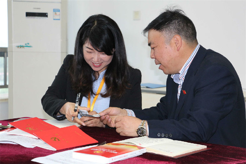 组织委员何丽收缴党费