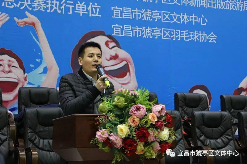 开幕式由猇亭区副区长姜媛主持。国家体育总局乒羽中心羽毛球二部部长冯平善、宜昌市体育局副局长李琳、宜昌市体育中心主任蔡克章等领导和嘉宾出席开幕式。区领导高亚华、许雯、李裕芳、罗德权等参加开幕式。