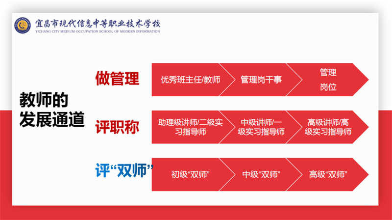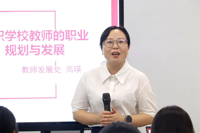 为了让新教师全面了解中职教师的职业规划与发展,教师发展处主任高瑛围绕“专业能力提升、职称评定、‘双师’认定”三大维度介绍了教师的发展通道、晋升渠道,为新教师今后的职业规划提供了有益的指导。