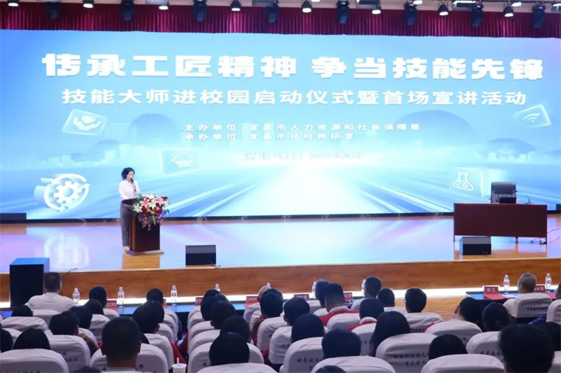 为积极响应国家关于加强技能人才队伍建设的号召,进一步推动职业教育与产业发展深度融合,大力发展技工教育,建设“技能型社会”,市人社局特组织“技能大师进校园宣讲活动”。首场活动于9月1日在宜昌现代信息技工学校启动,拉开了技能大师进校园系列活动的帷幕。