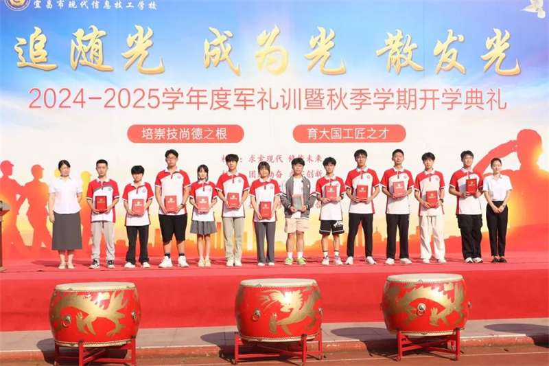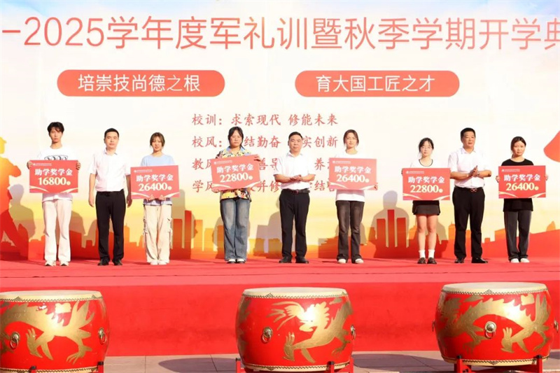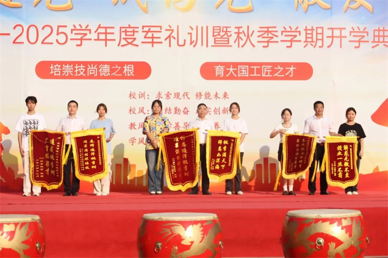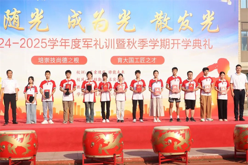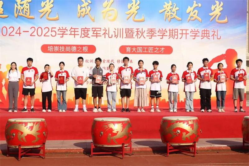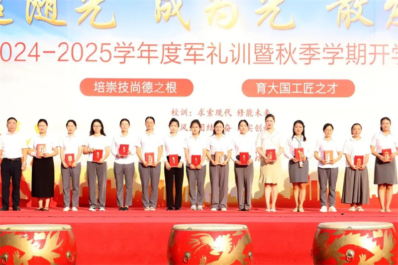 典礼对上学期教师能力大赛获奖教师、学生赛事优秀辅导教师以及在日常学习中表现优异、树立品德标杆的同学进行表彰。他们在竞技场上奋力拼搏,在学习生活中严于律己,用行动激励全体同学以新面貌迎接新学期,携梦前行,勤奋刻苦,不断塑造更加优秀的自己。纵使成功的姿态万千,努力与坚持必定是先决条件。校领导为获奖老师、学生颁发奖状、奖金,鼓励现代人辛勤耕耘,在职业教育发展的新浪潮中勇立潮头,大展宏图。