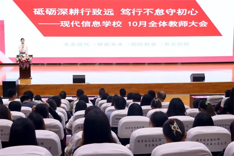 为深入推进学校规范化、高质量发展,进一步明确新学期奋斗目标,筑牢师德师风根基,提高整体育人能力, 10月9日,学校召开全体教师大会,校长吴昌钧、督学李朝晖、副校长肖飞、副校长伍远明出席会议,大会由学校办公室副主任刘倩影主持。