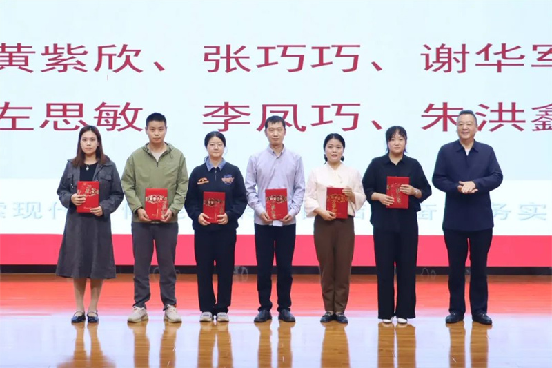 校领导依次为获奖教师颁发奖金、证书,以此鼓舞全体教职工汇聚文化创建的热情,凝聚文化创建力量,共同参与文化创建活动。