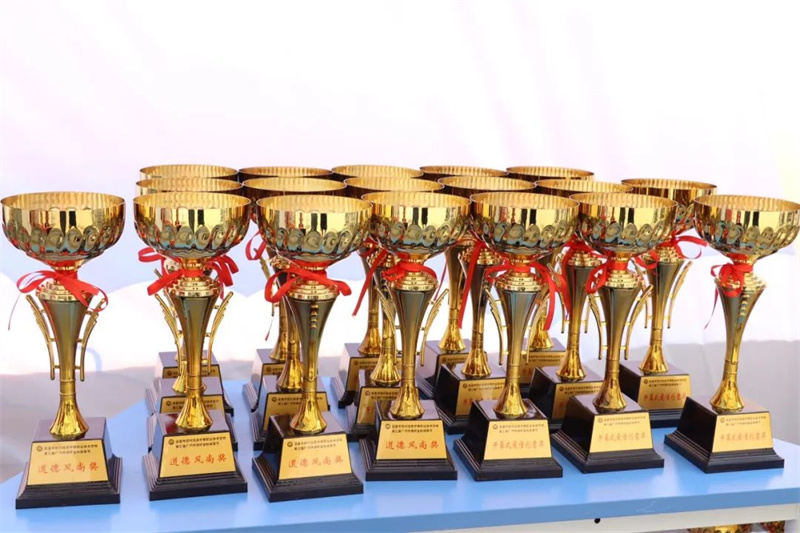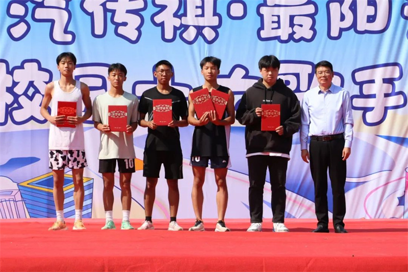 各赛项运动员经过决赛的激烈角逐,在热辣的汗水和欢呼喝彩声中摘得了1500米、4*100接力赛、实心球、跳远等项目的一二三名。团体积分尘埃落定,众多优秀的参赛选手和班级脱颖而出。闭幕式上,主持人公布了比赛成绩、各班积分,学校领导为获奖集体和个人颁发了证书、奖杯。