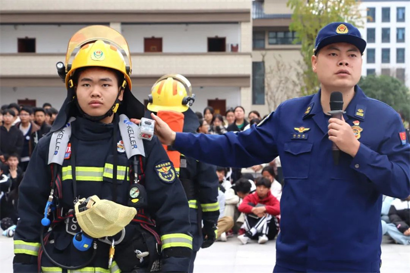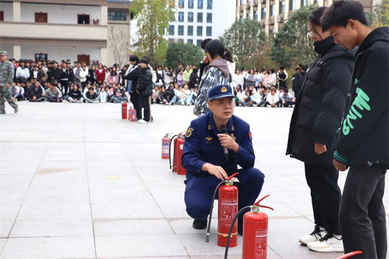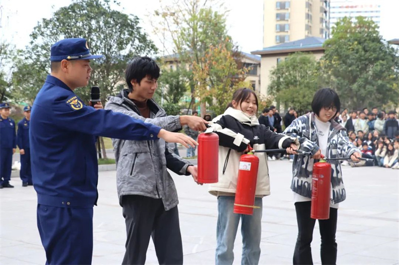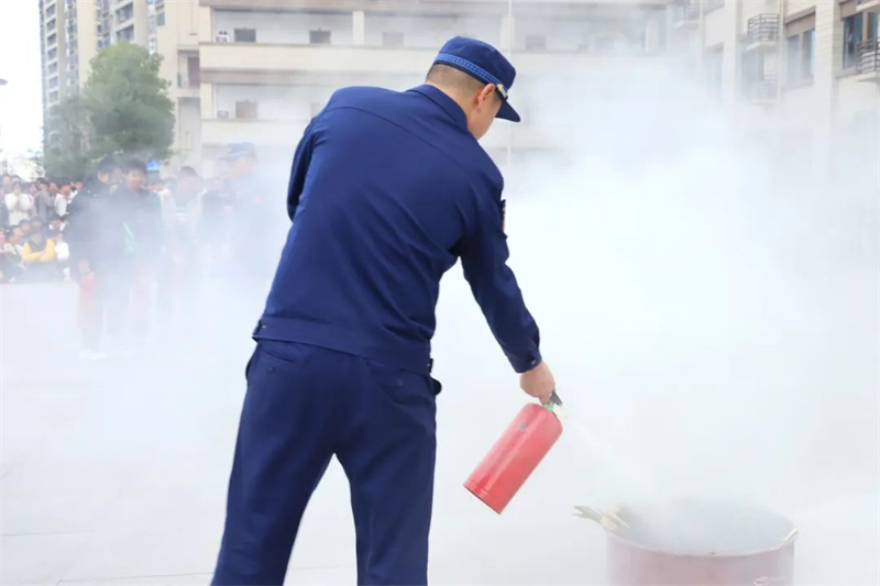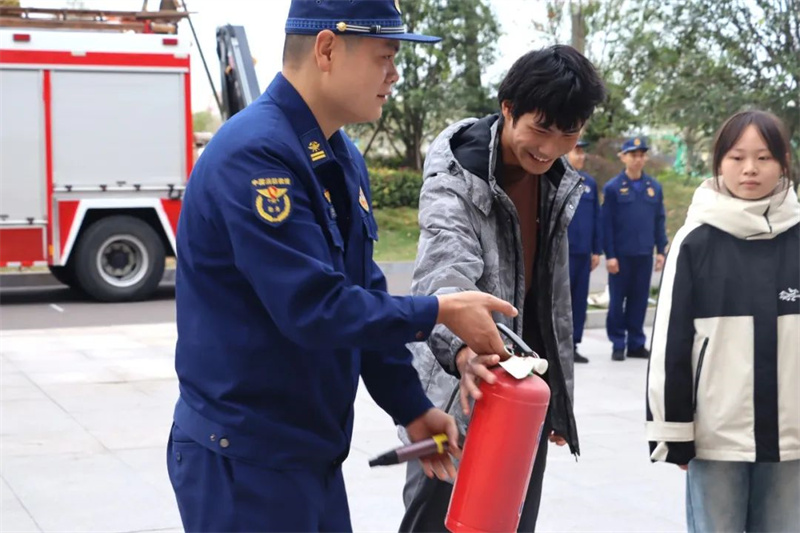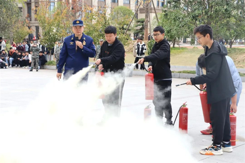 活动最后,消防官兵向师生们详细讲解了灭火器的使用方法和注意事项,多名学生也纷纷上前,在消防员的指导下体验了使用灭火器灭火的过程。