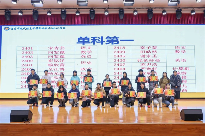 在会上,高一年级副主任陈文春宣读期中考试学校标兵、三好学生、单科第一、阳光少年的表彰名单,并由副校长伍远明、集团办副主任张露为学习标兵颁奖,由课程发展处副主任陈思思和邹建为三好学生颁奖, 由姚蕾老师和黄紫欣老师为三好学生颁奖,由学生发展处主任武玉林为阳光少年颁奖。江河眷顾奋楫者,星光不负赶路人,陈文春鼓励同学们,坚定目标勇往直前畅游知识海洋,才能奔赴心之所向的星辰大海。