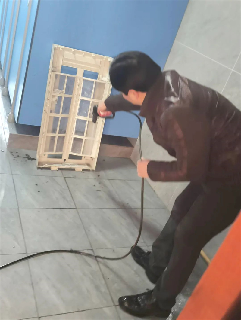 随着气温逐渐降低,后勤保障部对教学楼、寝室空调线路进行了排查,并对所有空调进行了清洗。
