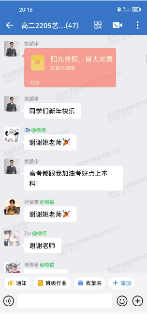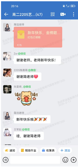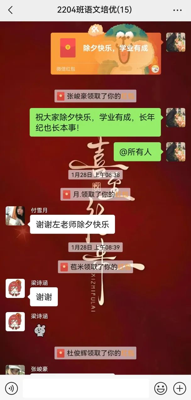 老师们怀着满满的爱,走进学生的寒假生活,送去新春的问候与关怀,倾听学生的心声,关心学生的生活状况,给予鼓励支持,用爱点亮现代学子成长之路。这份关怀温暖了学生的心,也拉进了家校之间的距离。