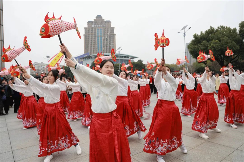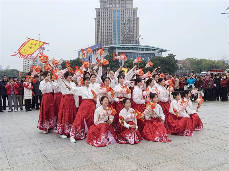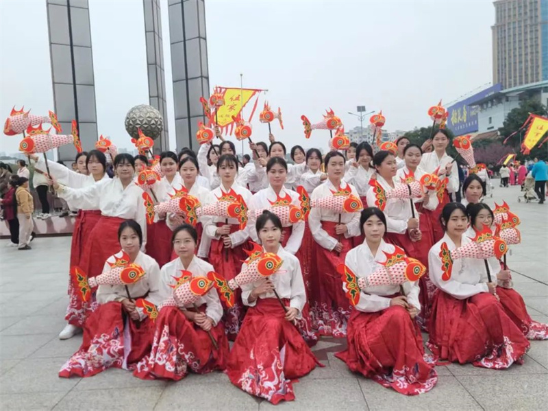 游街表演当天,街道两旁人潮涌动,热闹非凡。表演队伍途径福久源、大撤退纪念园、万达广场,三峡环球港等多个地点。汉服方阵统一着马面裙,手持舞鱼灯。学校舞龙方阵、汉服方阵用灵动的舞姿、洋溢的激情将汉服的古典韵味、舞龙的热血激昂展现得淋漓尽致。观众报以热烈的掌声,纷纷用镜头记录下这难忘的瞬间。这一刻,民俗文化与青春活力完美融合,成为了一道亮丽的风景线。