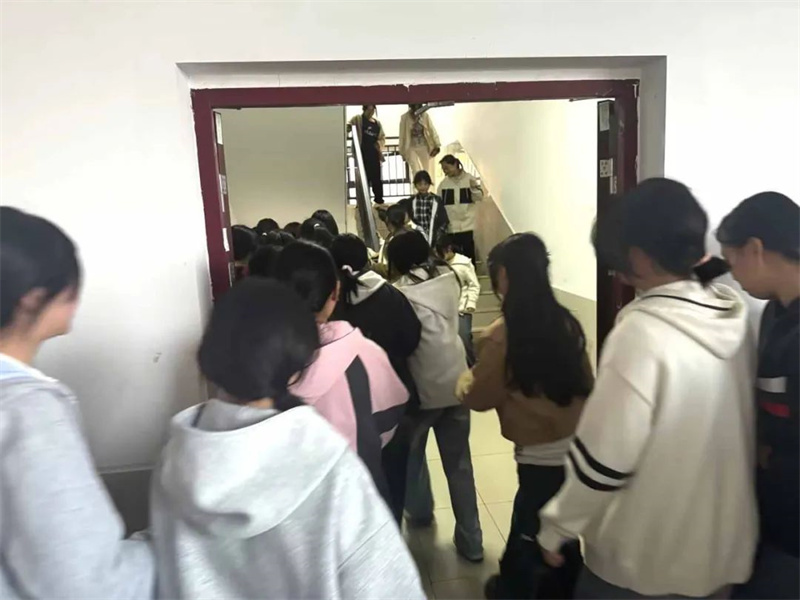 晚间7点,随着警报声响起,演练正式拉开帷幕。全体演习师生迅速进入紧急状态,学生们迅速起床,按规划好的路线争分夺秒的进行有序疏散撤离,他们快速用湿毛巾捂住口鼻,低姿弯腰,有条不紊地向门外撤离;各楼层的责任教师早已坚守岗位,引导学生避开危险区域,确保疏散过程不落下一人。整个疏散过程紧张有序,充分展示了学生们在突发事件中的应急反应能力和学校的组织协调能力。