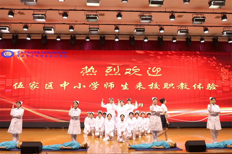 专业展演环节,机器人表演让原本冰冷的算法代码孕育出蓬勃的生命力,展现出了计算机网络技术专业学子在创新创业大赛中的丰硕成果;幼儿保育专业带来的团体舞蹈表演《象山水月》在山光水色中点染古韵之美,歌唱社团歌曲《海阔天空》鼓乐配合默契,军事社团武术表演“擒敌拳”气势磅礴,体现了学校“第二课堂”社团对激发学生兴趣、培养学生技能的积极作用;航空服务专业学子将在1:1模拟飞机实训基地中学习的航空礼仪、客户服务搬上舞台,展示了空乘人员的优雅与风采;心肺复苏技能表演还原了护理专业学子的课堂实操;旅游服务与管理专业学子在技能大赛中多次获奖,其神韵风姿劲爽挺拔,展现了职教学子自信昂扬的精神风貌。各中学参观学生反响热烈,在这场别开生面的活动中凝结了对职业教育的新认识。