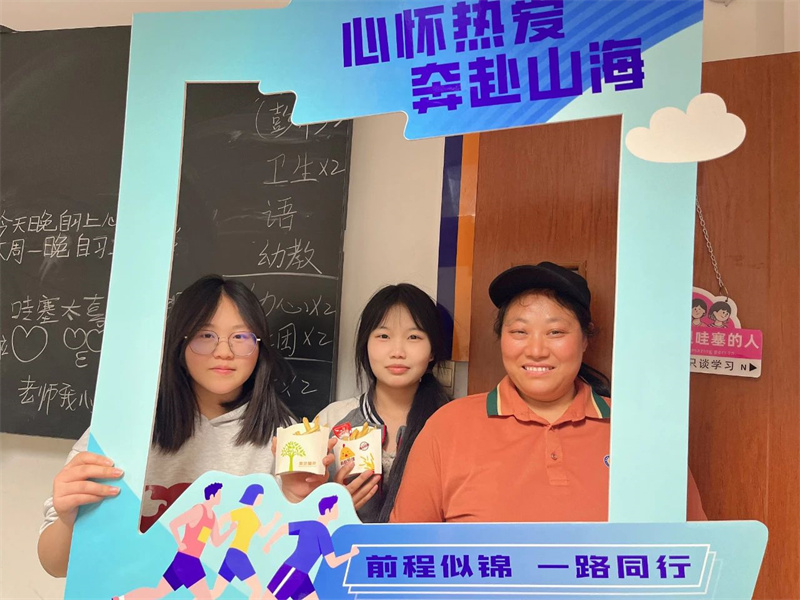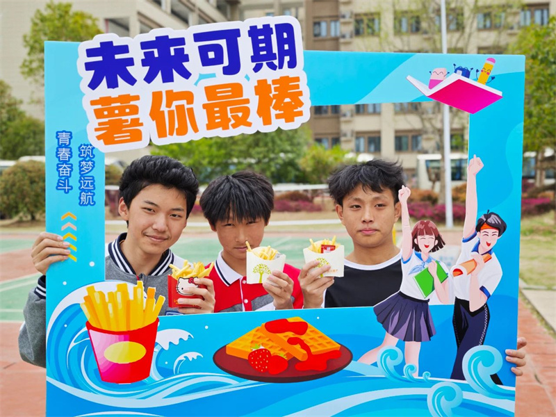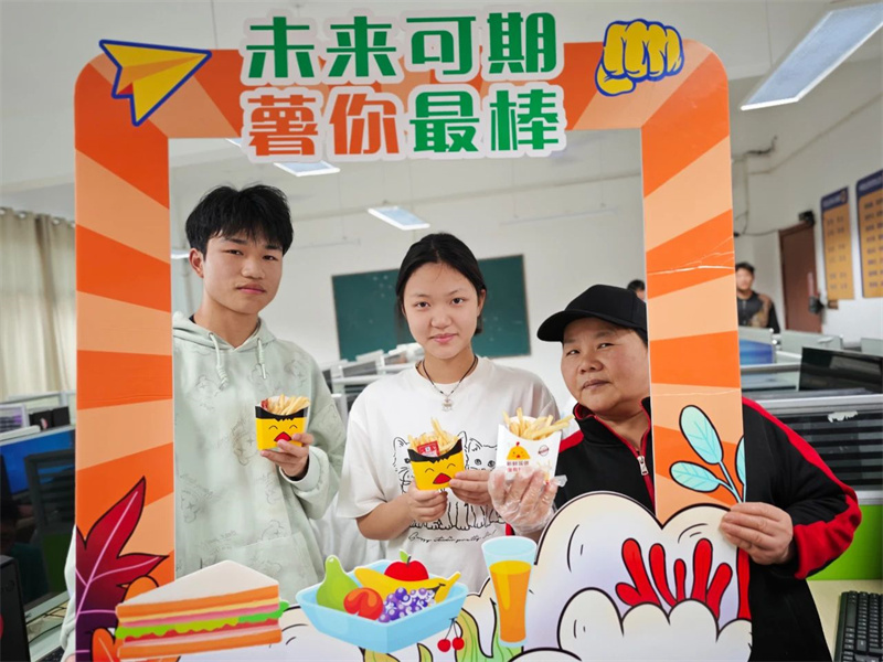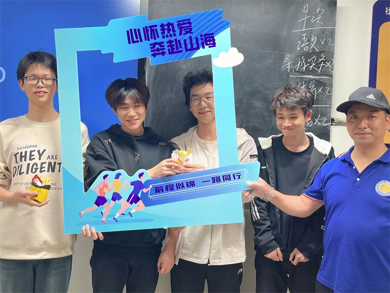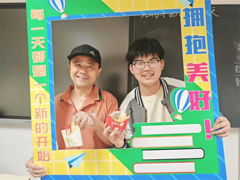 现场的拍照打卡环节,更是留下了许多动人瞬间。同学们与后勤员工一起,手持薯条和打卡相框,笑容灿烂。这些照片不仅定格了青春的美好,更成为同学们逐梦路上的珍贵回忆,激励他们“奋楫扬帆,破浪前行”。对于高三同学,高考、单招等大考在即,此次活动如同及时的鼓励,缓解备考压力,增强信心;对于高一高二同学,活动则像一盏明灯,引导他们在求知路上坚定前行,为未来积蓄力量。相信同学们带着这份温暖与力量,定能在各自的学习征程中书写辉煌。山再高,往上攀总能登顶;路再长,走下去总会到达。愿同学们在未来的日子里,以梦为马,不负韶华。