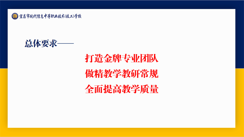 聚焦质量生命线,夯实教学主阵地。吴昌钧为新学年的教学工作制定了“打造金牌专业团队”“做精教研教学常规”“全面提高育人质量”三项总体要求。他在工作计划中强调:强化一个中心,坚定不移提升教学质量;抓好两支队伍,全力赋能教师与学生;深化三项研究,为教学发展注入动能;办好师生赛事,落实多项教育教学活动。同时,他也提出了管理团队的三个“一致”、教师育人的“十字”准则,集备集研的“六步走”等具体细则。