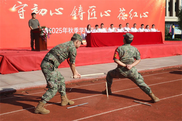 随着党支部书记田水荣宣布“2025级高一军训正式开营”,为期七天的军训生活正式开启。未来七天,同学们将在教官的指导下,进行队列训练、军事技能、内务整理、国防教育等多项内容的学习和训练。相信通过这次军训,同学们必将收获坚毅的品格、严明的纪律和深厚的友谊。