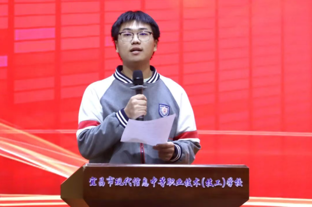 技能高考计算机专业2302班周景阳同学作为学生代表,以“在奋斗中成长,用拼搏报恩情”为主题,分享了高三学子的心路历程。他谈到,开学以来,学习节奏加快、压力倍增,但同学们在老师的引领下逐步进入“冲刺轨道”,在文化课与专业技能训练中同步发力。“我们从被动接受走向主动迎战,从迷茫徘徊走向目标清晰。”他代表全体同学郑重承诺:“我们将以最饱满的热情、最坚韧的毅力,走好接下来的200多天,用行动书写无悔青春,用成绩回报父母与师恩!”