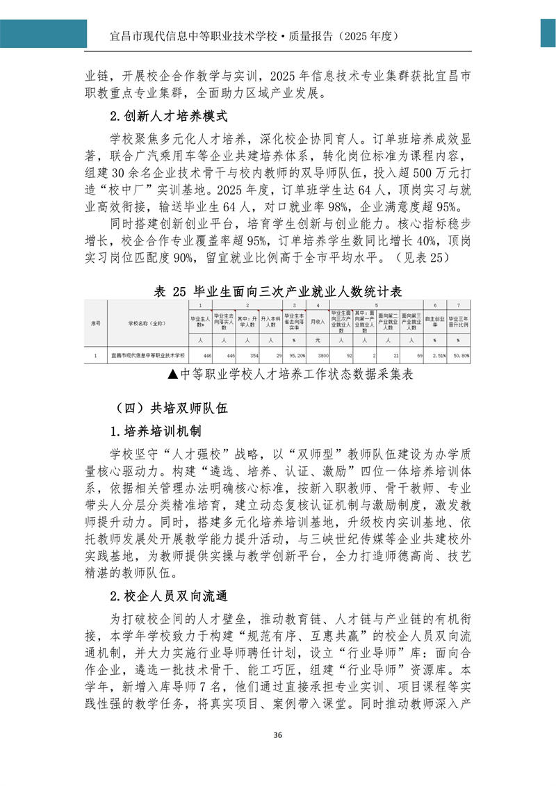 宜昌市现代信息中等职业技术学校质量报告(2025年度)