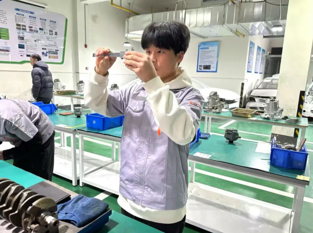 新能源汽车运用与维修专业聚焦核心技能培育,开展游标卡尺精准测量、特色车型专业解说等实操展示活动。学生规范的操作流程、专业的讲解,充分展现了他们过硬的专业功底与灵活的专业应用能力。