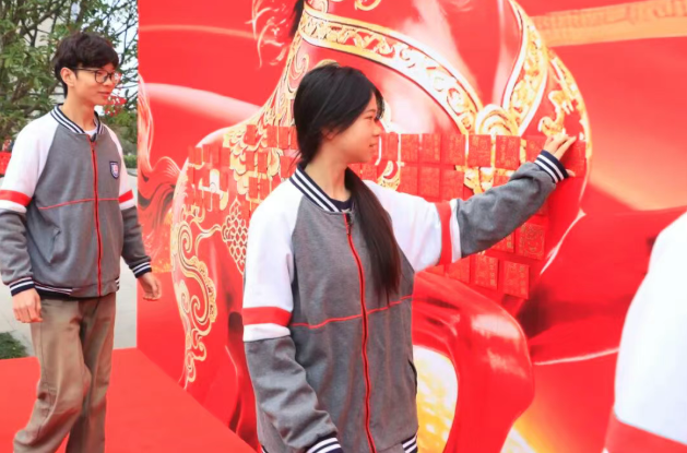 学校特别设置高三心愿红包抽取环节,高三获奖学子随机抽取心愿卡并指定老师完成心愿,暖心互动为冲刺备考的高三学子送上温暖与力量。