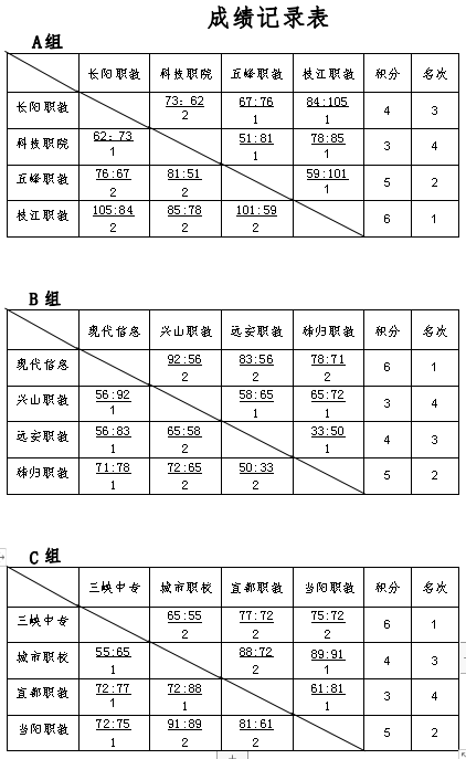 历经3个比赛日的激烈角逐,累计18场比赛,小组赛“硝烟”散尽、尘埃落定。现代信息学校、枝江职教中心、三峡中专等八支队伍出线。