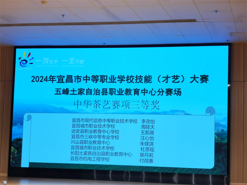在五峰土家自治县职业教育中心分赛场中,我校荣获中华茶艺赛项三等奖。