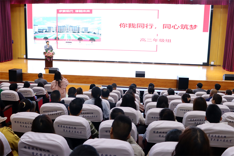 大会后,执行校长李朝晖作总结报告。他立足国家对中职教育的政策,解读我校办学理念及愿景,让家长们更深入了解职业教育,强调了要以“明确的目标”为导向,通过“持续行动”“理性反思”“科学改进”来达成本届学生的高考目标。其中,他从“夯实基础制度建设”“学习型教师团队建设”“以生为本的课程体系建设”“宽严相济的德育教育”“平稳有序的后勤保障”五方面着重介绍了我校的工作重点。李朝晖代表全体教职员工向家长们郑重承诺,竭尽全力助力学生的每一次腾飞!