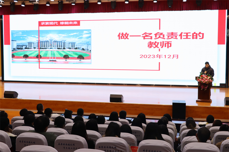 副校长肖飞主持会议并宣读2023年秋季学期表彰文件,为文明风采大赛优秀辅导教师、创新创业大赛优秀辅导教师、省级学校文化建设优秀论文获奖教师颁奖。鼓励老师们在做好本职工作的同时,积极参与各类赛事,展现我校师生风采。