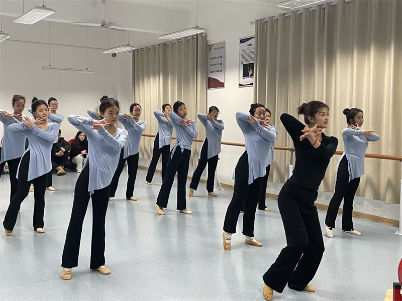 蒋洁老师精准示范,逐步指导,分层练习,让学生直观感受到了古典舞的美。