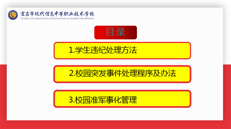 学生发展处副主任向骏以“活化德育,播种习惯”为主题从学生违纪处理方法、校园突发事件处理程序及办法、校园准军事化管理三方面展开报告。着重介绍了我校“班主任教学管理为主、教官德育为辅”的军事化特色管理模式以及班主任与教官协同工作的要求、准则。