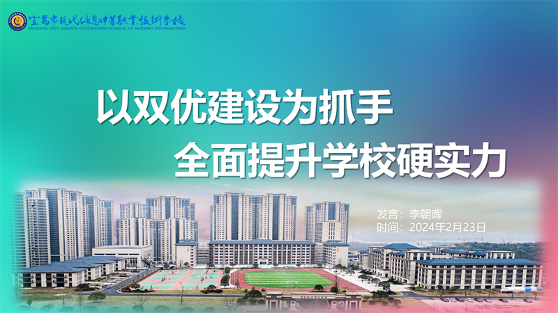 李朝晖做了“以双优建设为抓手,全面提升学校硬实力”的主题讲话,从“确保安全事故零记录、提高生源质量、提升教育教学质量、推进学校双优建设”四方面对新学期工作提出了多项具体而微的要求。鼓励师生讲好职教故事,保持各项工作数量与质量的正向增长,以创办优质中职学校、建设优质专业为全体同仁的共同目标。