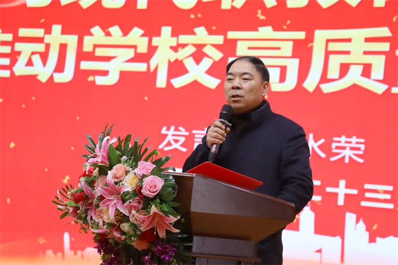田水荣围绕“深入学习现代职教体系建设方案,推动学校高质量发展”这一主题开展讲话,在研判职业教育政策、解读我省职业教育现状及未来两年规划的基础上,对标对表省教育厅的八项重要工作要求找差距、抓落实,对全体教师未来的工作指出了明确方向及十项具体措施。其中,重点强调新学年要继续保持安全事故零记录,加强师生员工思想政治学习,着力建设双优学校。在面对人口结构变化带来挑战的同时,田水荣勉励我们强抓发展黄金期,快速提升学校竞争力,满足社会对优质职业教育的需求。