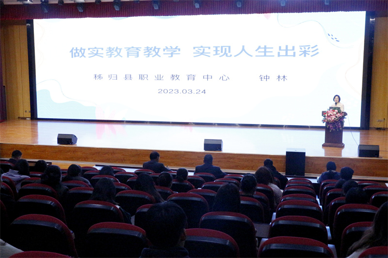 他山之石可以攻玉,外请专家助力教师成长。为了促进教师的成长与发展,强化教师教学和班级管理能力,着力打造一只思想过硬、业务精良的教育教学队伍,3月24日下午,宜昌市现代信息中等职业技术学校邀请了秭归职教中心高级讲师钟林做了《做实教育教学,实现人生出彩》的专题讲座。此次专题讲座由副校长肖飞主持,全体教师参与。