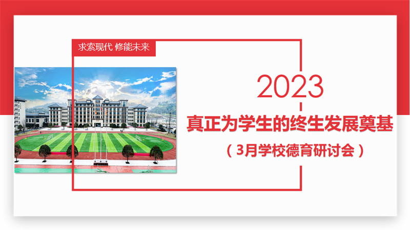 百年大计,教育为本;教育大计,德育为先。德育是整个教育环节的压舱石和教育质量提升的稳定剂,立德树人是学校教育的首要任务。为了进一步明确育人目标,落实“三全育人”工作的落地落细,加强德育管理队伍和班主任队伍建设,提升学校“为学生终生发展奠基”的能力。3月15日,学校召开了以“反思工作找问题、群策群力寻突破”为主题的德育工作研讨会。在支部书记田水荣、校长李朝晖的带领下全体校务委员、年级组负责人、班主任准时参会,展开了一场思想交流的盛宴。