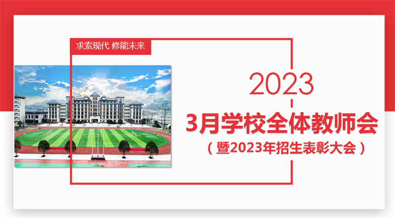 3月13日,学校召开三月全体教师大会,就招生工作、宣传工作、教学工作进行总结和新一轮的部署。现代教育集团董事长田水荣、副董事长朱宗桥、总经理胡一杰、校长李朝晖、副校长肖飞、事业发展部部长吴可、副部长刘春红与会。