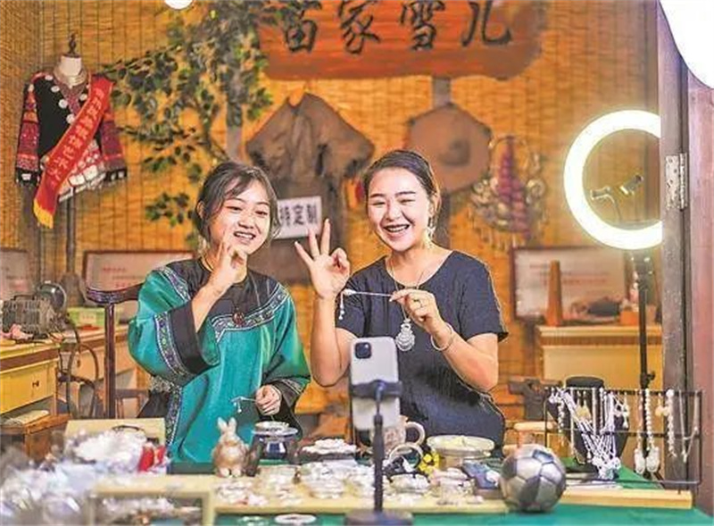 贵州省黔东南民族职业技术学院学生在产教融合基地学习直播技能