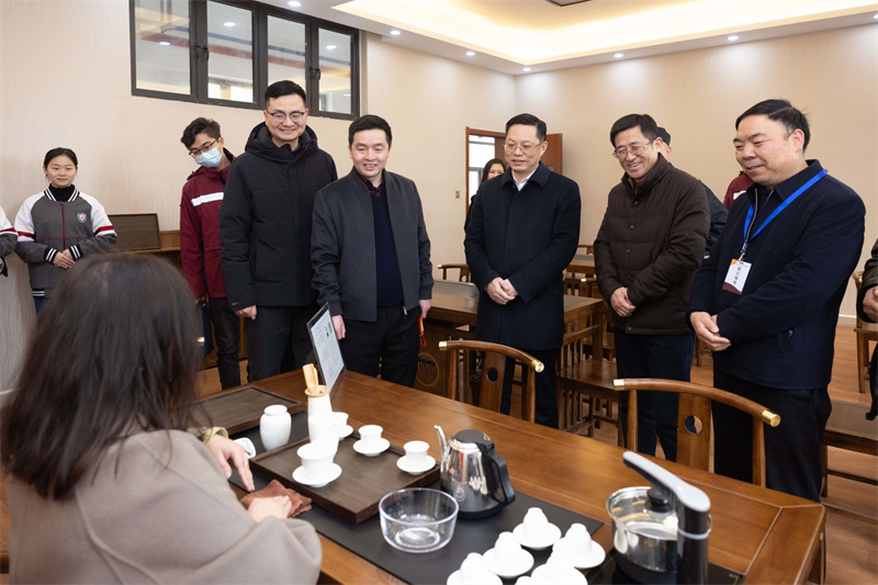 2月15日,宜昌市伍家岗区委副书记、区长谭志军莅临我校检查师生营养午餐工程、食堂管理和食品安全工作,同时就我校在职业教育领域的深耕与发展进行了亲切座谈。政府办主任曾雷、区教育局长湛保华、区市场监督局副局长薛勇、区卫健局相关同志陪同调研。现代教育集团董事长田水荣、副董事长朱宗桥、总经理胡一杰、校长李朝晖、副校长肖飞、事业发展部部长吴可、副部长刘春红、集团办公室副主任李绚与会。