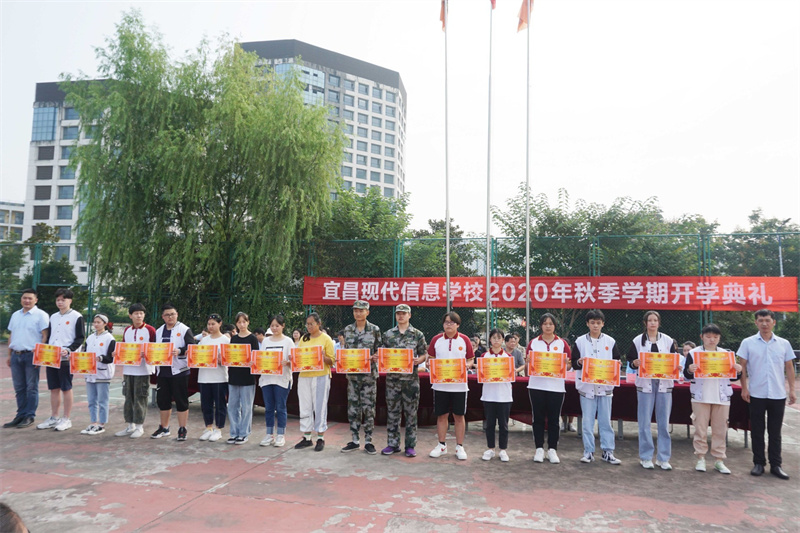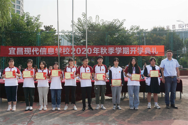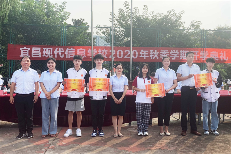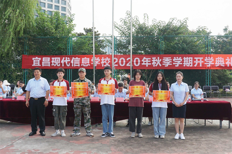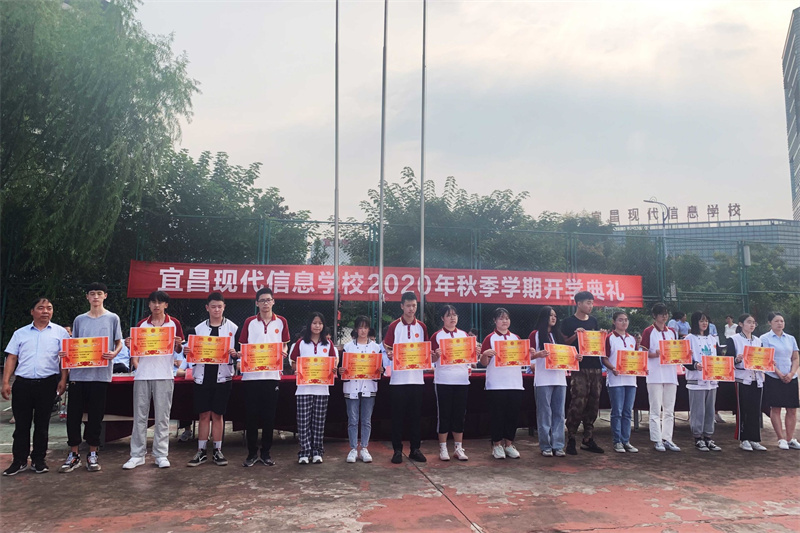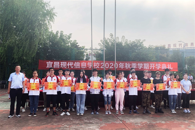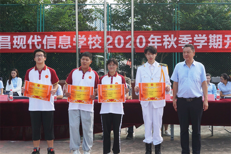 随后校办副主任陈忠敏宣读表彰决定,表彰了2020年春季学期优秀班级、三好学生、优秀学生会干部、爱校之星、视频大赛/技能大赛获奖学生,学校领导为他们颁发了荣誉证书和奖学金,激励全体同学向受表彰的同学学习,在新学期取得更大的进步。