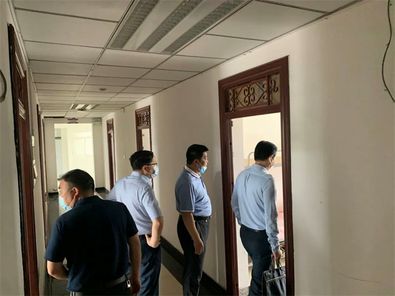 朱宗桥校长将学校落实小班教学、单人单桌分批次就餐、校园整体消杀等工作情况作了详细汇报。检查组巡查了校园环境,检查了门卫室是否按照学校防疫要求严格控制进出人员。随后,检查组到寝室、食堂、教室、教师办公室等场所检查防疫设施设备、防疫物资储备及相关卫生情况。