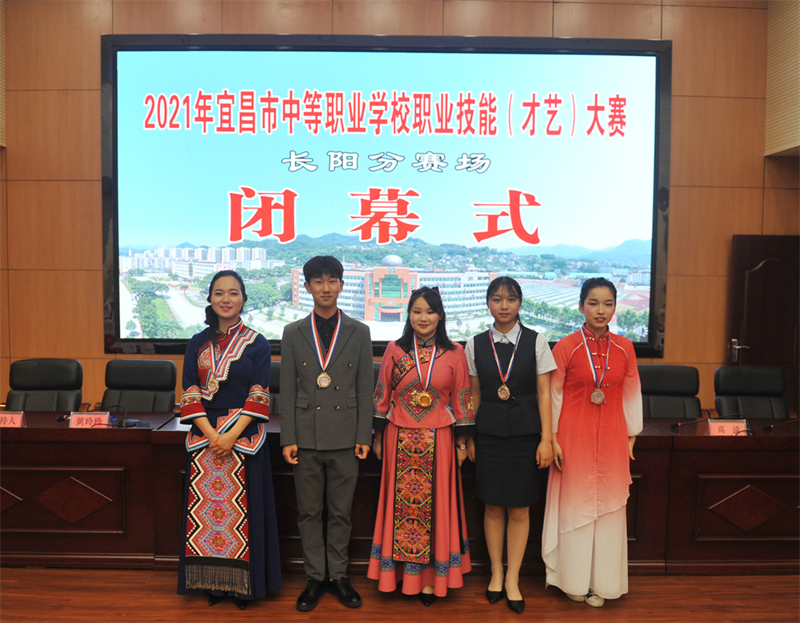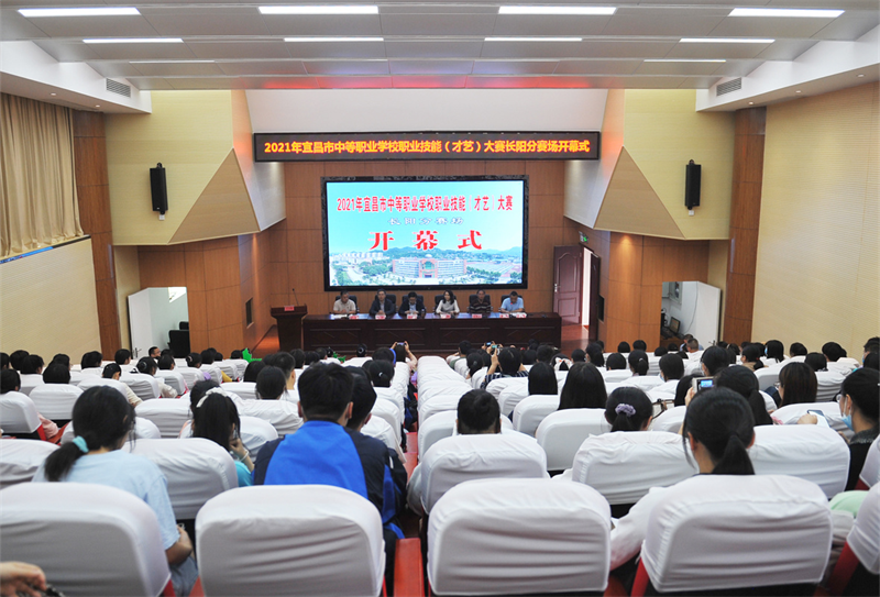 清江美如画,画廊在长阳,5月20日下午2021年宜昌市中等职业学校学生技能(才艺)大赛在长阳职教中心开幕。宜昌市教育局四级调研员石希峰,宜昌市教育局职业与成人教育科科长杨晓艳,宜昌市职业技术教育研究室主任周欣,首场赛事承办校校长杨奎与来自全市11所中职学校近百位师生共同见证了今年技能大赛开启的重要时刻。