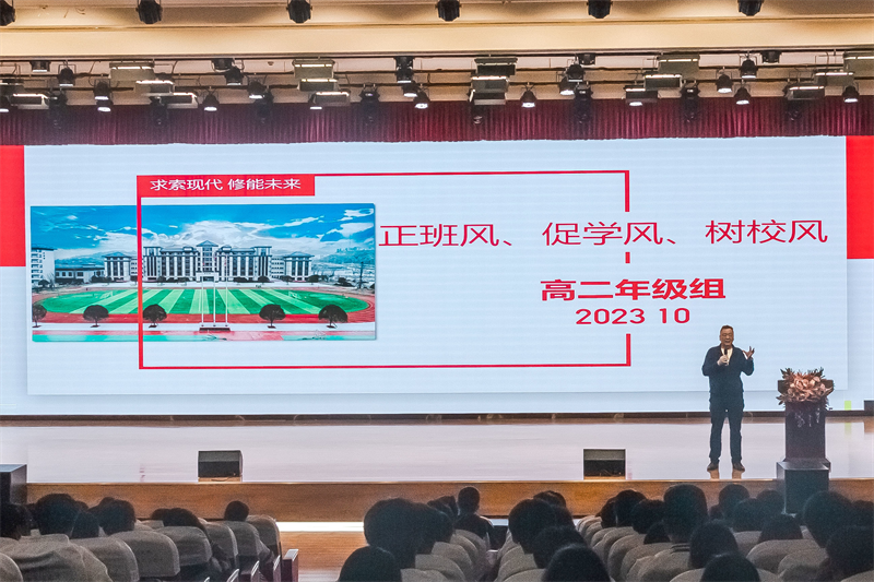 班风是指一个班级稳定的、具有自身特色的集体风范,是一个班级中大多数学生在学习、思想等方面的共同倾向。班风正则学风浓,学风浓则校风纯,为加强学校学风、班风建设,真正落实发展好学校浓厚的文化氛围。10月22日19点,我校在大礼堂隆重举行了高二年级“正班风、促学风、树校风”主题训导大会。执行校长李朝晖、高二年级主任吴成军参会。