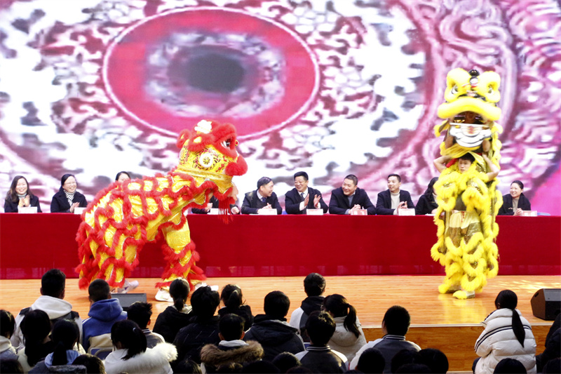 颁奖仪式前后,在这欢聚一堂、喜迎开学的美好时刻,还为全体师生准备了精彩的表演。学校舞狮队为大家呈上节目,猛狮舞动,擂鼓阵阵,眨眼弄嘴,摇头摆尾,两只神气活现的狮子围绕着全场老师、同学送彩头、送祝福。